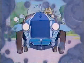 As noted previously, Toad's Open Road unwinds across a real landscape - that of Edwardian England. In this, the book is a bit unique; most classic children's novels take place in the author's present but usually make recourse to a fantasy land outside of history. Grahame's story unfolds against a backdrop of social upheaval and industrialization, although much of this remains subtext (the weasels evoking a restless proletariat, the "crowded" River Bank suggesting the way towns were edging in on the country). However, there is one potent and very particular symbol of the ultra-modern: the automobile. Neither trains nor factories figure in Wonderland, while Neverland is replete with pirates and fairies but nothing to suggest the London from which Wendy flies. Yet Willows makes a jarringly modern artifact a centerpiece of its storytelling - the "real world" making an uncanny appearance in its animal utopia, the twentieth century vulgarly strutting its stuff across the ideal arcadia. It's a fascinating juxtaposition.
