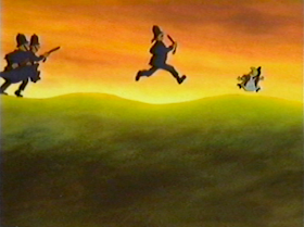 The adaptations of Willows are remarkably consistent in their fidelity to Toad's adventures. They all include the initial contact with the cart, the various motor mishaps, the journey into town and the mindless theft, the courtroom travails, the escape from prison, the leap from a pursued train, the defiance of the bargelady, and the final fateful car crash. Indeed, some adaptations include nothing but these episodes (the Disney version only throws in the invasion of Toad Hall for good measure). Where the films depart from one another, and from the book, is in their final conclusions. The book ends on a strangely sanguine note, with a mellowed Toad strolling through the woods alongside friends, everyone settled into a perpetual Edwardian arcadia, in which modernity has been casually tossed aside (along with, inadvertently, the mysticism and melancholy which haunted the earlier passages of the book). The ending's serene amiability is probably representative of Grahame's wistful sensibility, but dramatically this is one area where the films arguably improve upon the source.