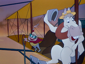 The Disney goes Milne one better; not only is Toad unrepentant, he discovers a new mania, soaring above his scolding friends' heads in a newfangled aeroplane. Most adaptations since have followed suit and it is, admittedly, a perfect ending to the story. It allows our secret sympathy with Toad to find its appropriate outlet, while acknowledging the indomitability of his personality, and recognizing that the future keeps coming, whether or not we want it to. Finally, this conclusion allows Toad to pursue his dream of the Open Road by other means - now that the roads have become too crowded and dangerous, it's into the Open Air - no horizon moves quicker.