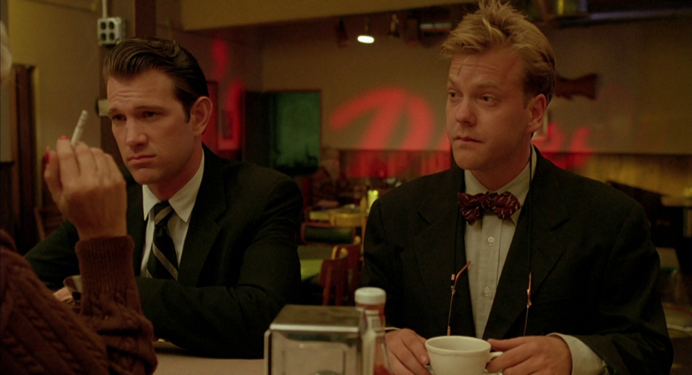 In Deer Meadow, a moody breeze unsettles Lynch's compositions–the edges of the frames wander subtly, as if we might drift away at any moment (anticipating the floating camerawork of later scenes set in Twin Peaks). Angelo Badalamenti's uncharacteristically subdued jazz hums softly in the background, complemented by the sporadic buzz of open sockets and the faint Indian war cries carried by electrical wires. Even the small-town set design is vaguely peculiar, the sheriff's station located in an ordinary house (like the "This Is It" club in Blue Velvet), blurring the public and private. The investigation into this unwelcoming village is led by the aloof Agent Chet Desmond (Chris Isaak), standing in for the gregarious Dale Cooper (Kyle MacLachlan, limiting his part to a cameo) before he too disappears from the film. By now even Twin Peaks fans would be disoriented. We're all falling down the rabbit hole together.